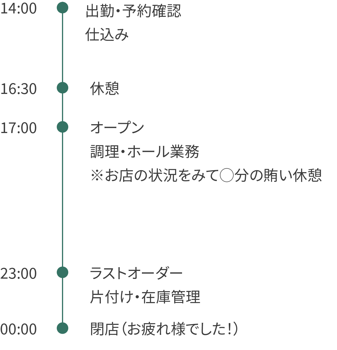 | 勤務時間 | 00時00分〜00時00分 |